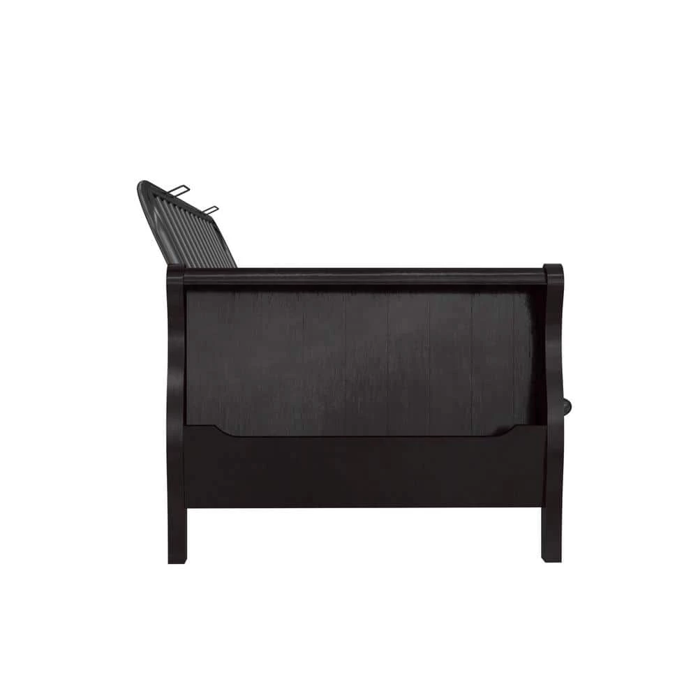 - Mid-century modern futon with side storage perfect for books and magazines.