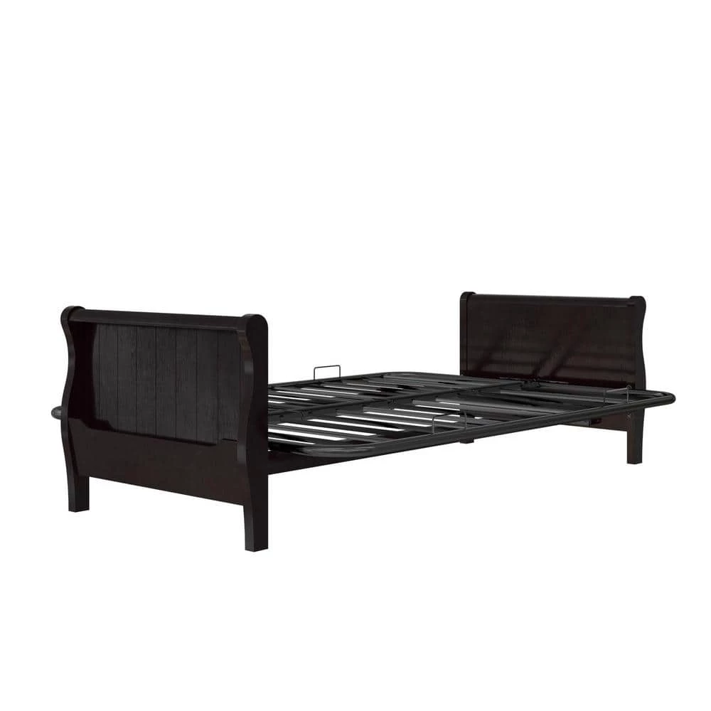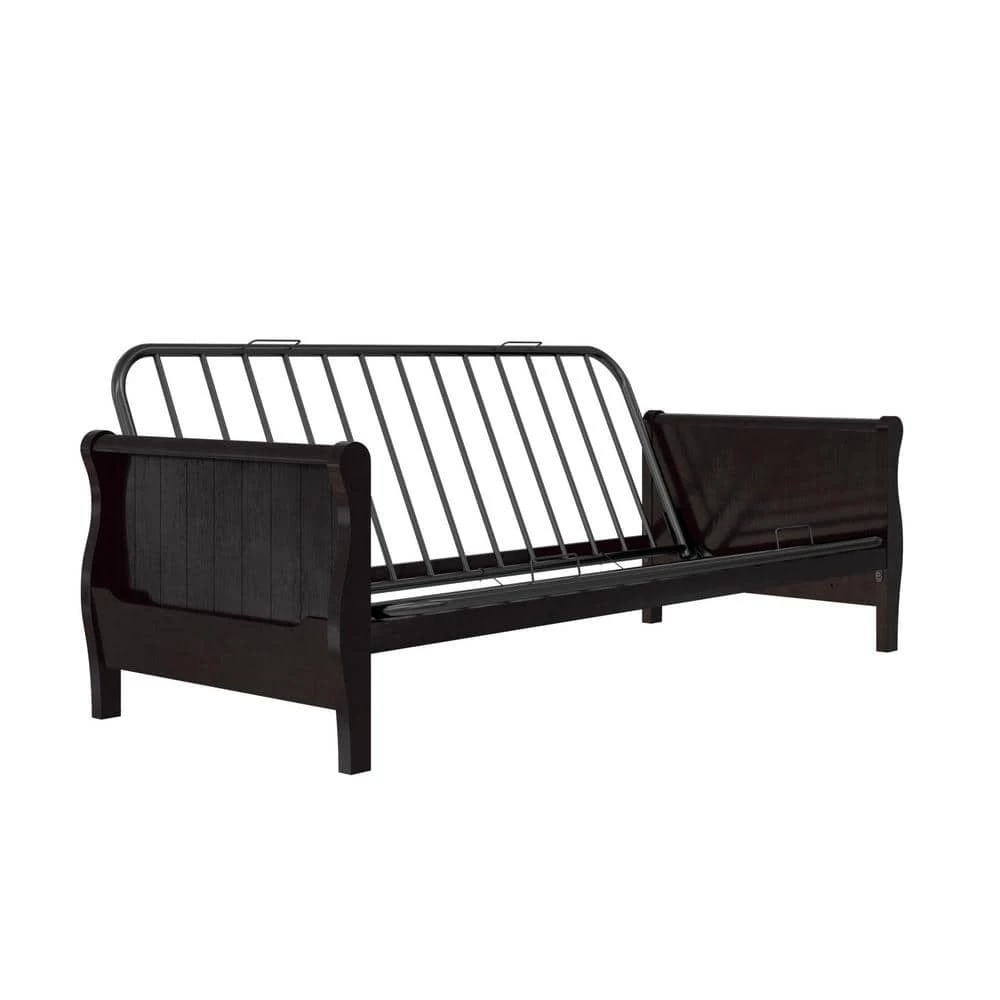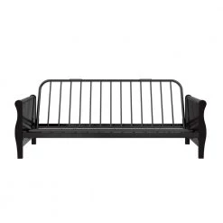 The DHP Wood Arm Futon is the ideal futon for any living space. Featuring solid wood arms win a walnut finish, it will surely compliment any room decor. This futon quickly and easily converts from sofa to full size bed. Pair with the matching DHP microfiber upholstered mattress to get the complete look. The 8 inch coil mattress offers ultimate comfort and complete support. The DHP Wood Arm Futon will make a welcome addition to any room.